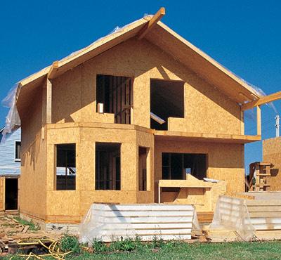 SIP-панели состоят из двух ориентированно-стружечных плит (OSB) толщиной по 10 мм и сердечника из пенополистирола толщиной 140 мм, склеенных полиуретановым клеем под давлением около 18 т.